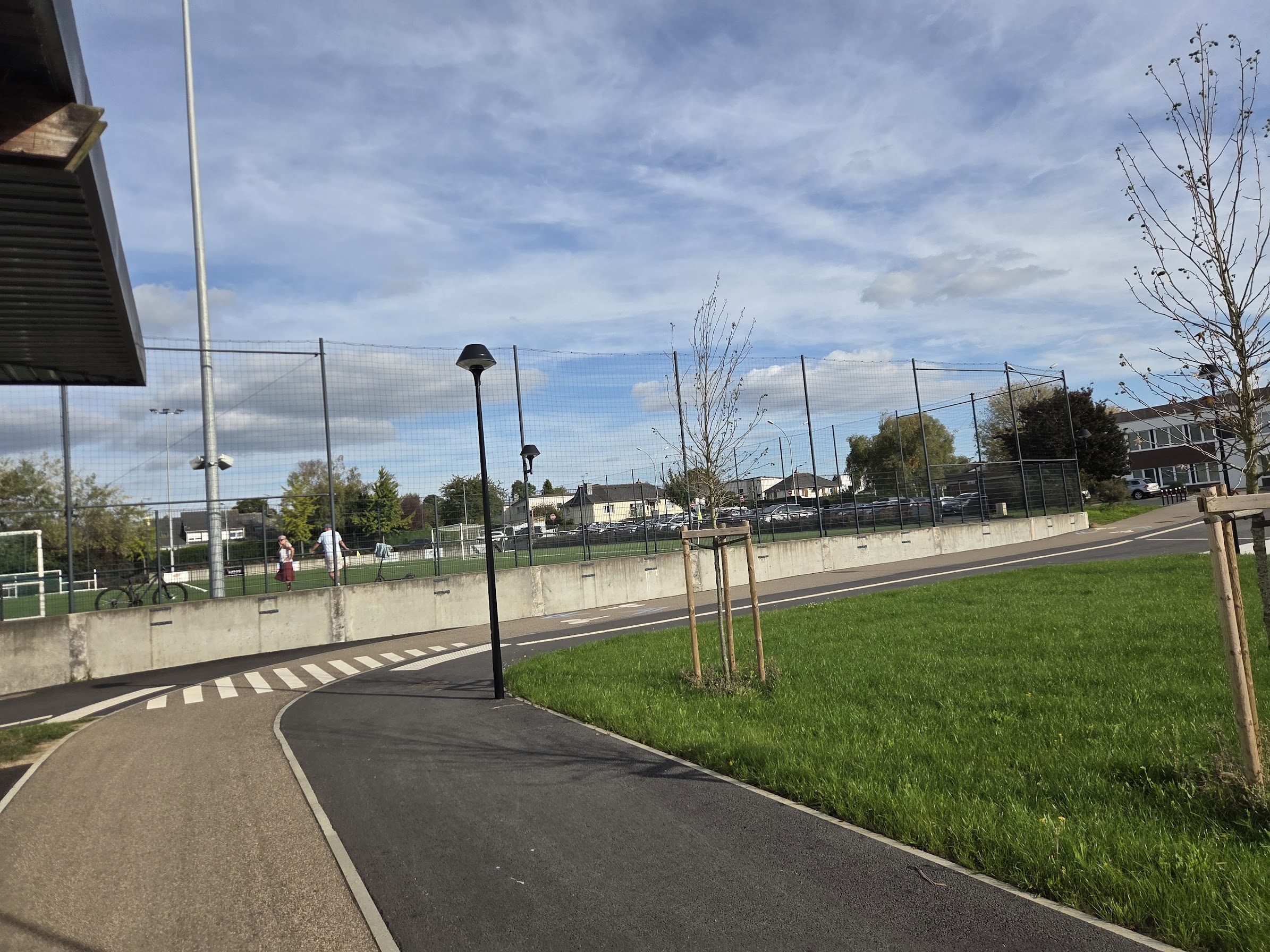 Le REV se termine par une piste bidirectionnelle avec une couleur distincte de l'espace pour les piétons. Il dessert les équipements sportifs et se termine avec un lien vers l'est en direction de l'avenue des Verdaudais et un lien vers le sud de la ville via la rue du stade.