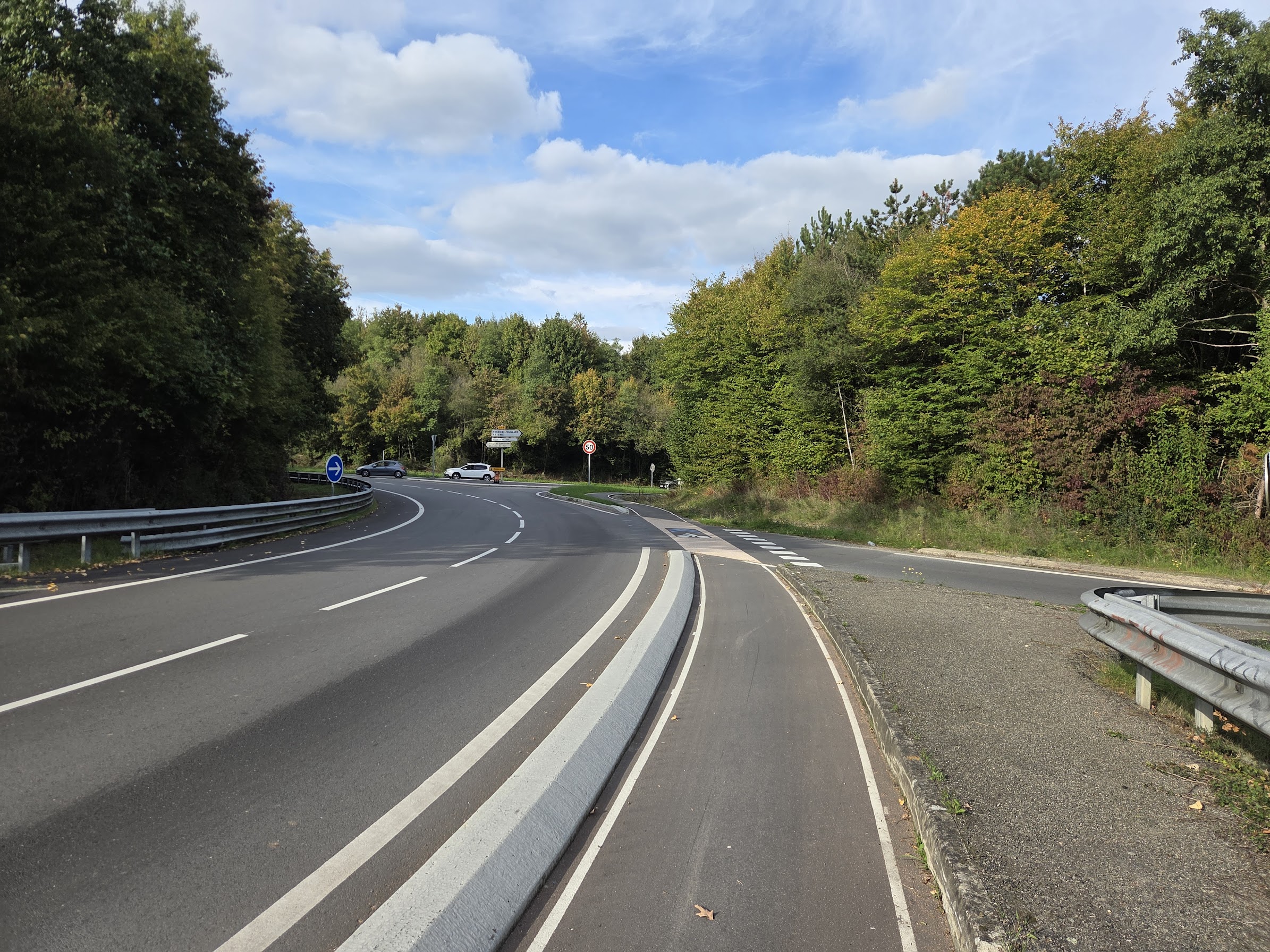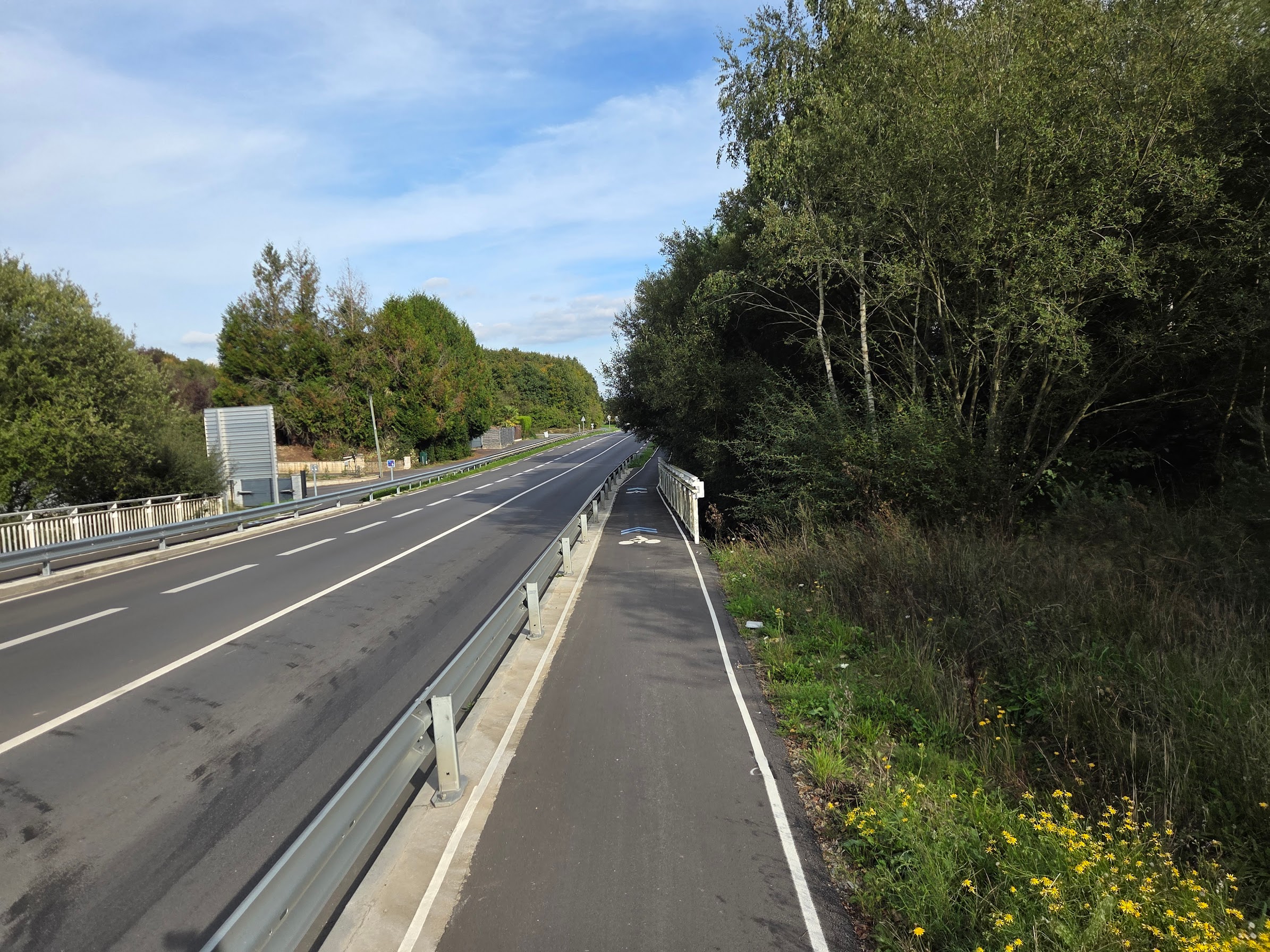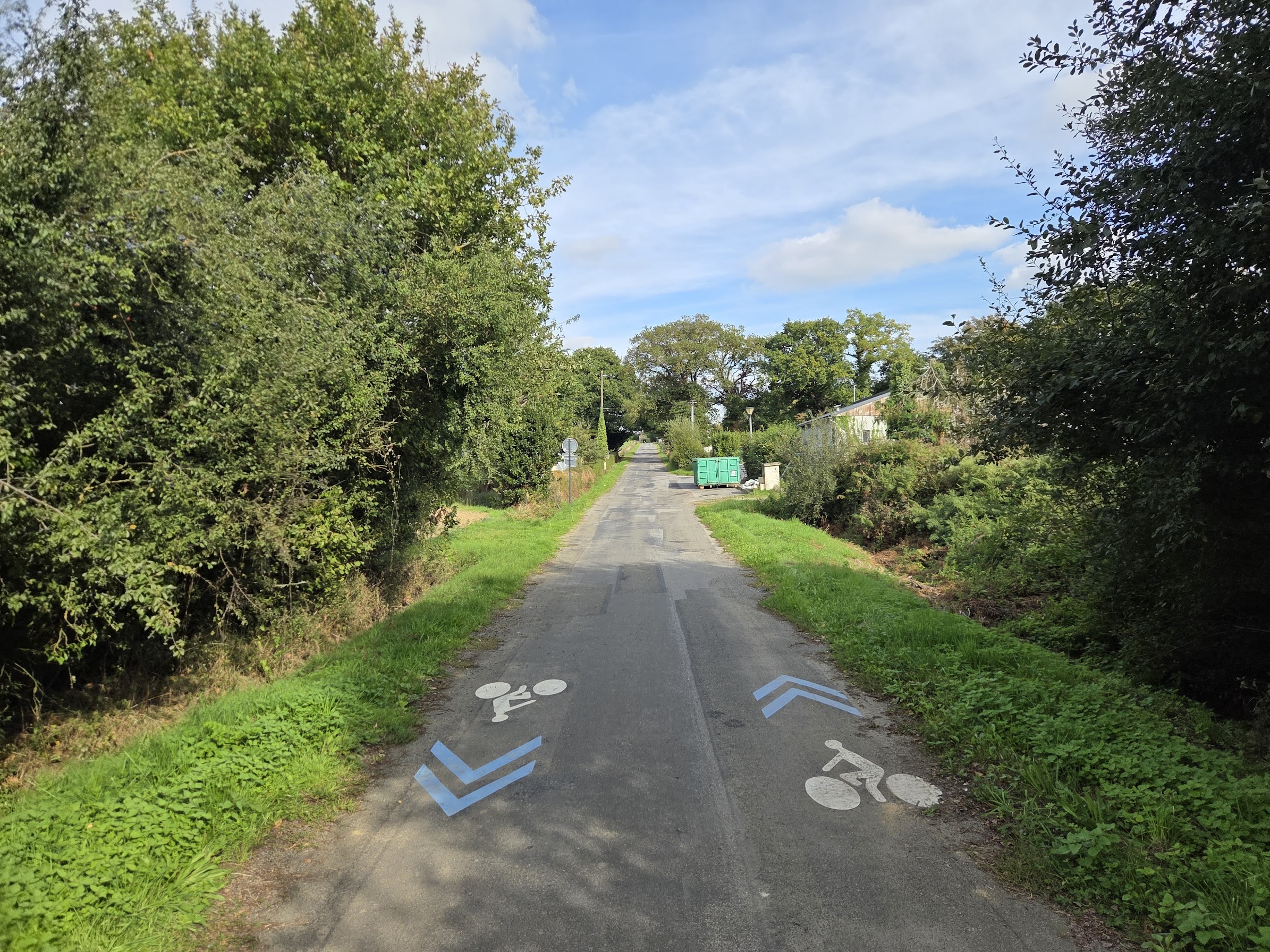 On peut questionner le choix de ce bout d'itinéraire par Rennes Métropole, la voie bus étant anxiogène avec des bus (mais plus souvent des cars) qui doublent à vitesse élevée.