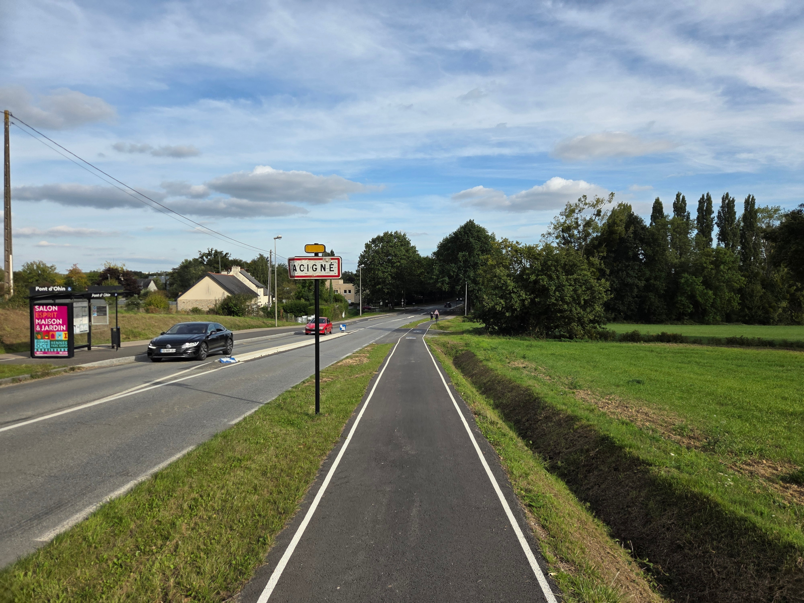 La piste cyclable se poursuit sur 2,3 kilomètres jusqu'à l'entrée d'Acigné. Quelques sections sont entrecoupés de rues adjacentes sur lesquelles la piste cyclable a la priorité mais oblige parfois à ralentir très fortement à ces intersections sans que cela soit forcément justifié.