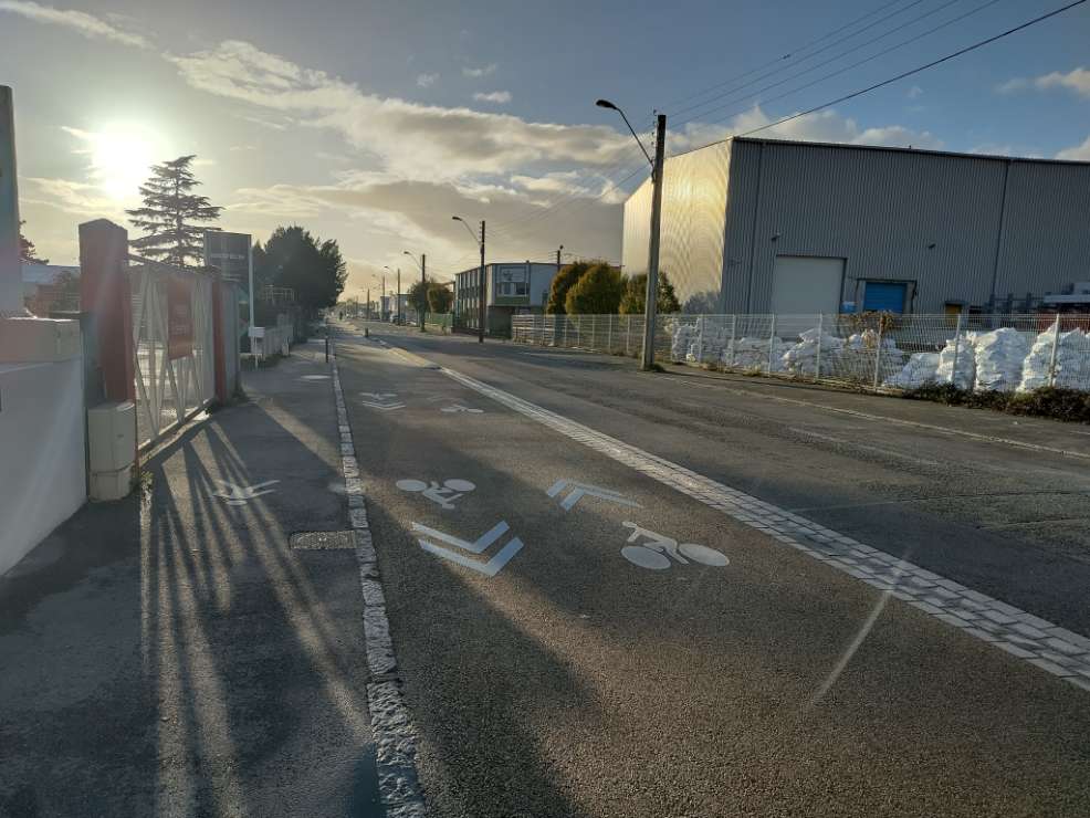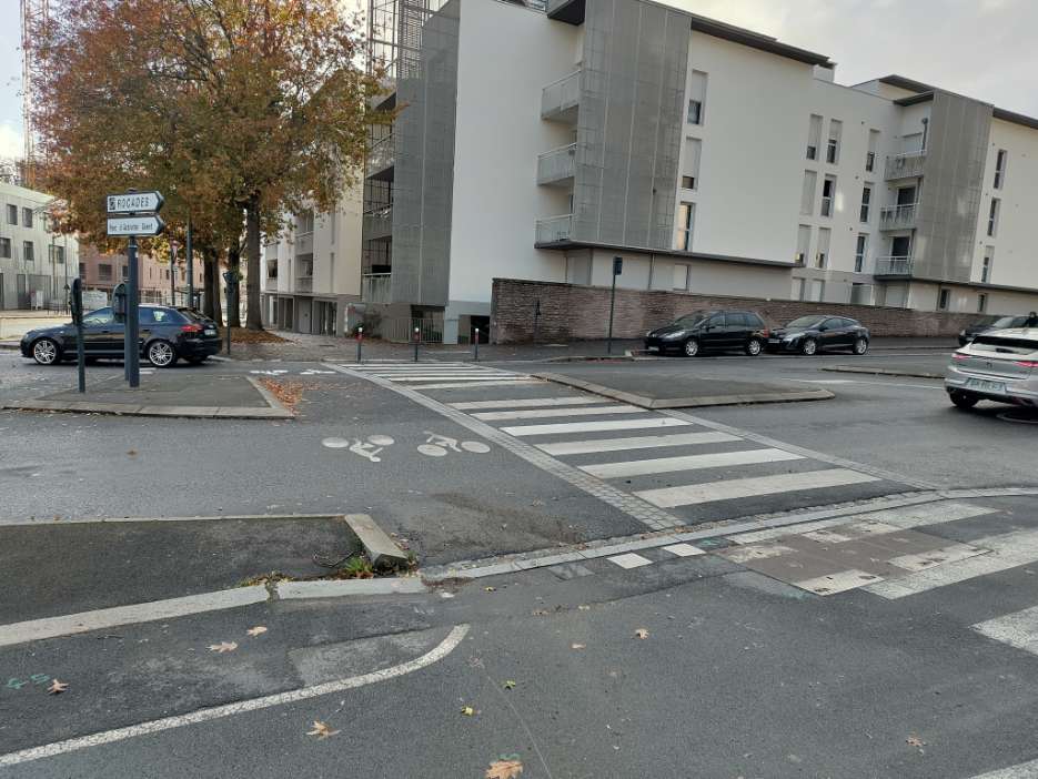 Il s'agit d'un DSC (Double Sens Cyclable : rue à sens unique pour les voitures, mais à double sens pour les cyclistes). Malheureusement il y a souvent des voitures garées sur le DSC, notamment les soirs de matchs mais pas seulement. Il y a un petit giratoire assez plat au niveau du croisement avec la rue Kerviler et souvent les voitures coupent le giratoire et le prenne pratiquement par la gauche.