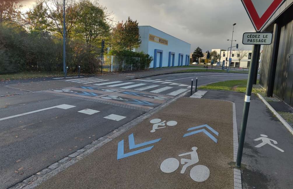 Malheureusement la piste bidirectionnelle Prévalaye s'interrompt au nord du pont Robert Schuman: