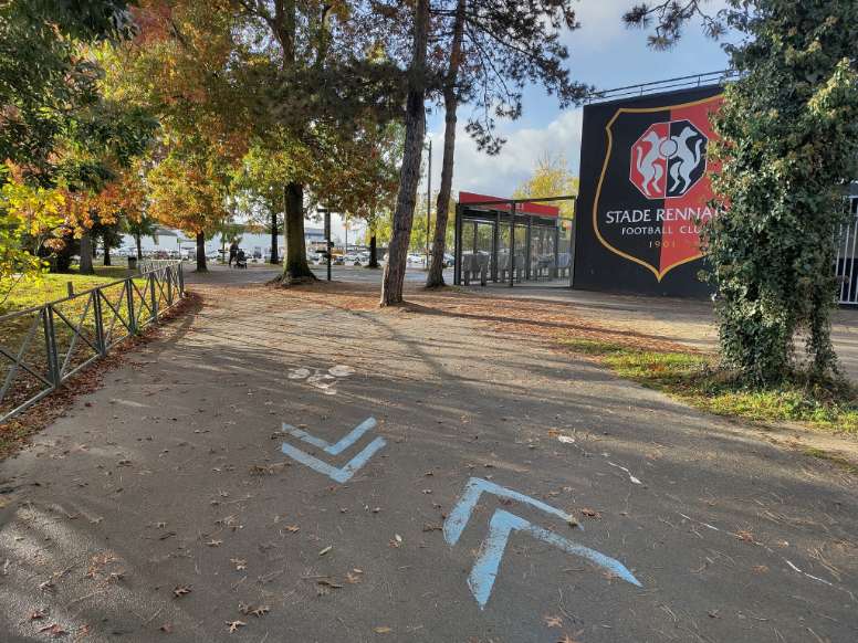 Au départ le REV est consitué d'une bidirectionnelle longeant un trottoir séparé. Cependant au niveau du stade, la bidirectionnelle et le trottoir fusionnent. A l'ouest du stade, l'espace est très large mais il n'y a pas de cheminement cyclable défini au sol. Le passage peut s'avérer impraticable les soirs de match, surtout avant et après (le passage est possible pendant le match proprement dit).