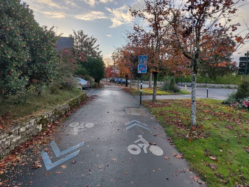 Il s'agit d'une piste bidirectionnelle reliant la rue Louis Guilloux à la rue Amiral Courbet. La jonction avec la rue Louis Guilloux est cependant mal faite :