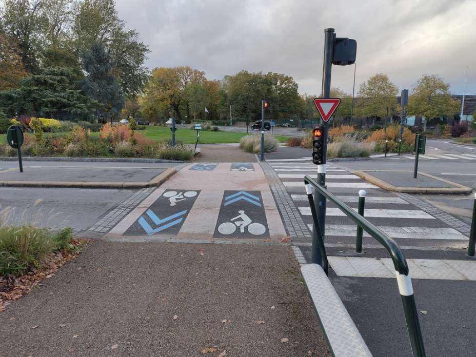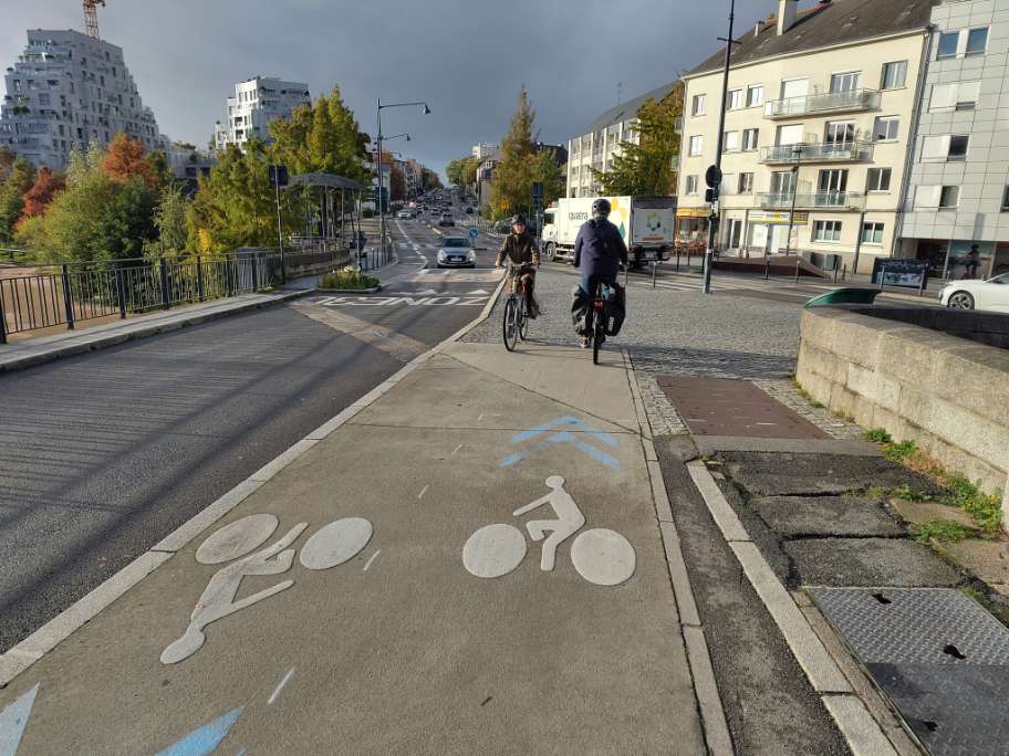 Malheureusement la piste bidirectionnelle Prévalaye s'interrompt au nord du pont Robert Schuman: