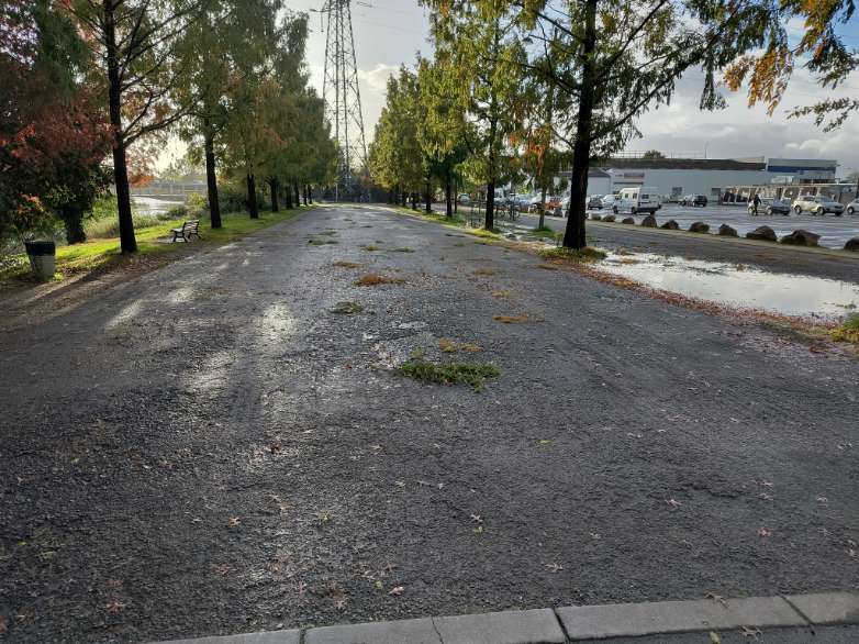 Il s'agit du chemin de halage nord, constitué de sable stabilisé et donc moins roulant. Il est également partagé avec les piétons.