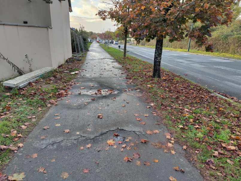 Il s'agit de l'ancienne piste bidirectionnelle parée des couleurs du REV. Elle est dégradée par endroits du fait de racines, ce qui peut la rendre dangereuse (la nuit en particulier). Entre la rue du parc et l'arrêt des Pins, c'est une voie partagée avec les riverains (parfois mal garés). La toute fin est de la rue de Rennes subit le même sort: voie partagée avec le trottoir qui sert également d'accès aux riverains.