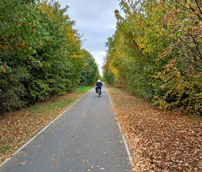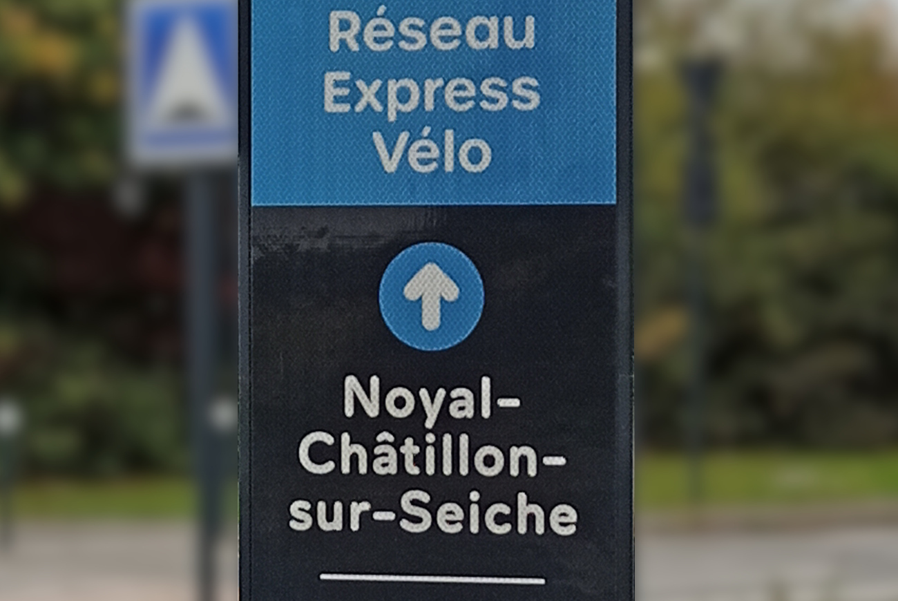 Le tracé du REV emmène les cyclistes à l’Ouest de la ville plutôt que de les faire aller tout droit vers le centre, comme font les automobilistes. Entre le rond-point d’entrée de ville et la mairie, par exemple, on pourrait faire 900m à vélo en allant directement à la mairie, à la place on doit rouler presque le double : 1,7km.
