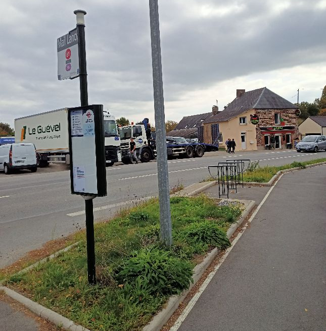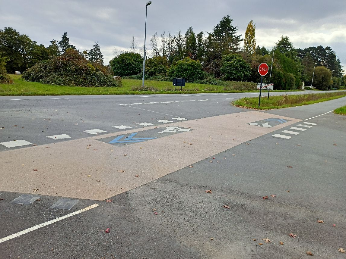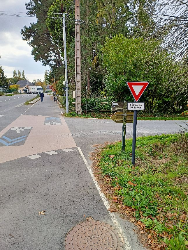 Le REV se termine abruptement dans un quartier résidentiel de Noyal (rue de l’ancienne gare) sans plus aucun aménagement ou indications pour rejoindre le centre de la commune.