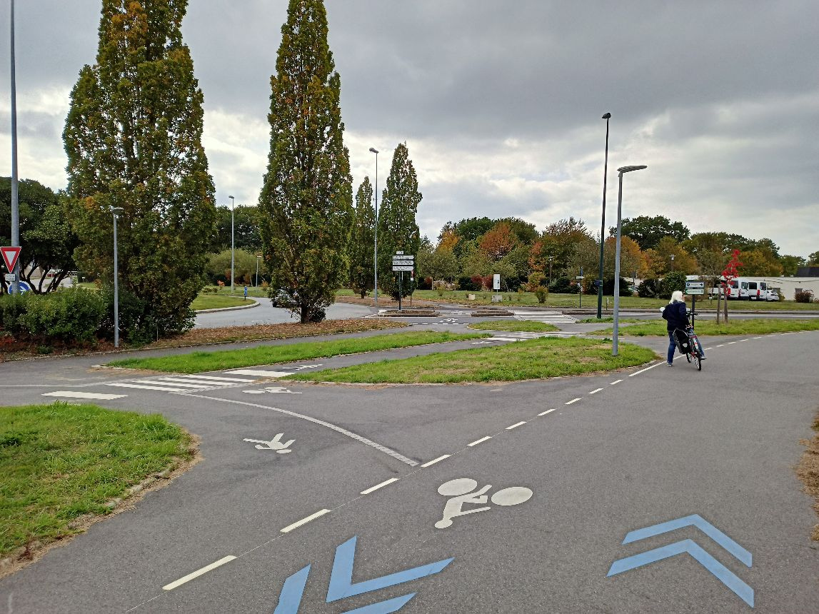 En septembre 2023, le responsable du chantier a déclaré que comme le nouvel immeuble au nord du giratoire était enfin livré, la traversée cyclable serait traitée d'ici fin 2023, l'ilôt détruit pour y déplacer le passage piéton (décalé de 3m vers l'ouest). Il n'en a rien été. Les piétons et cyclistes continuent à se partager le passage piéton entre les deux tronçons de REV. Seule la bande podotactile a été déplacée en rive nord, envoyant les mal voyants hors du passage piéton directement sur l'îlot. Cela génère des conflits piétons/cycles alors que ce point aurait du être traité depuis deux ans.